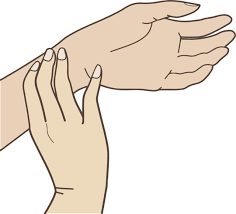 1分間の心拍数は手首に指を当てると測定できます。呼吸回数と同様に15秒×4で良いでしょう。
